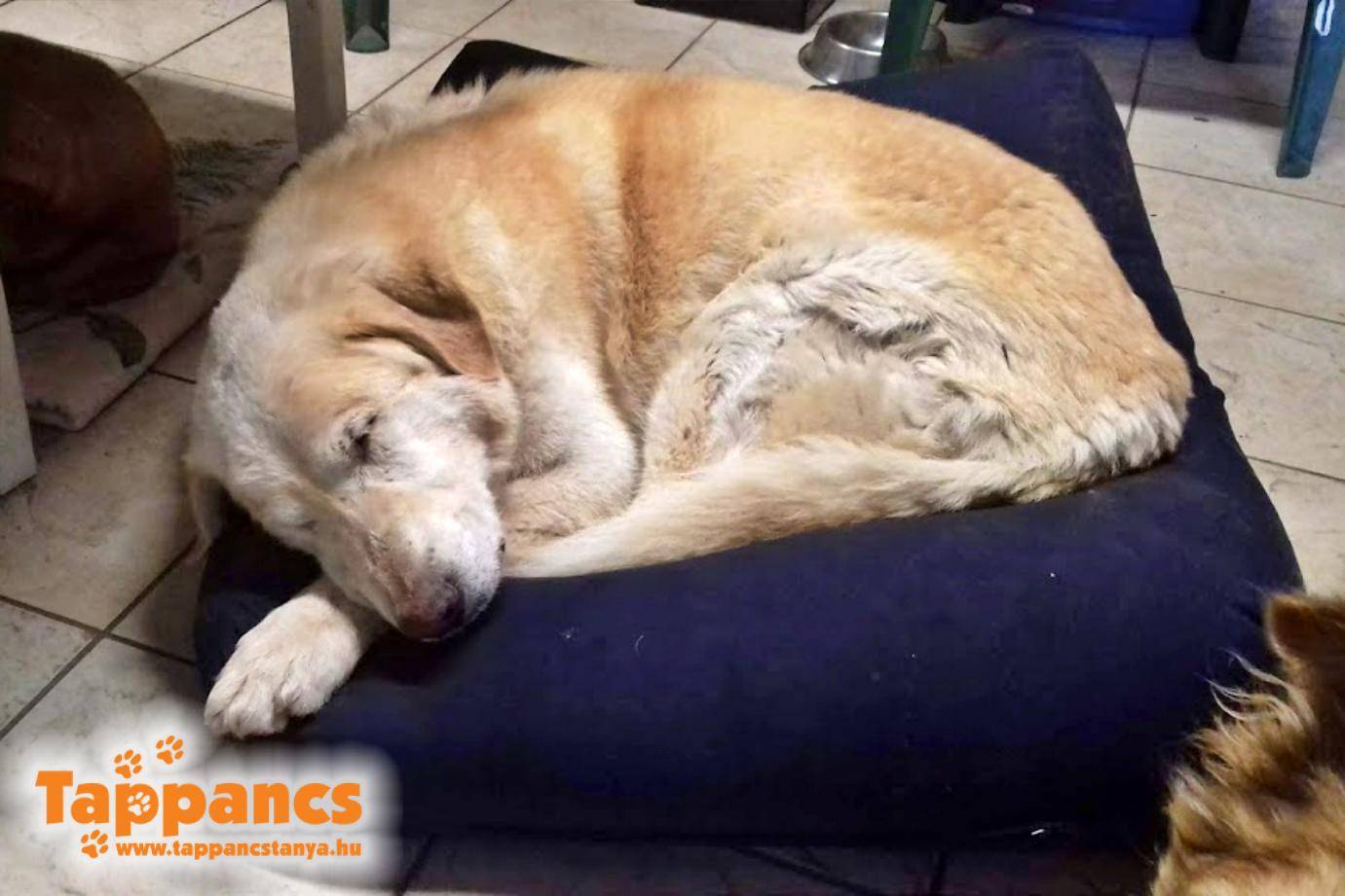 A partnerszervezetünktől kapott kutyaágyakból egy babzsákfotelt már hadirendbe állítottunk az előkészítőben: ez lett mindenki kedvenc fekhelye, úgyhogy pózoltak az öregek az új ágyukban.