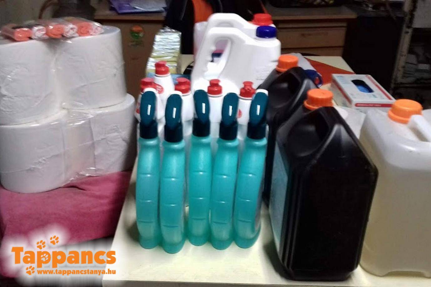Egy rendszeres támogatónk, Éva is kilátogatott a menhelyre, hogy az állatoknak szánt őszi adományát elhozhassa. A kutya és cicaeledelek mellett órási mennyiségű tisztítószert, felmosót, fertőtlenítőt és papírtörlőt is vásárolt. Köszönjük szépen!