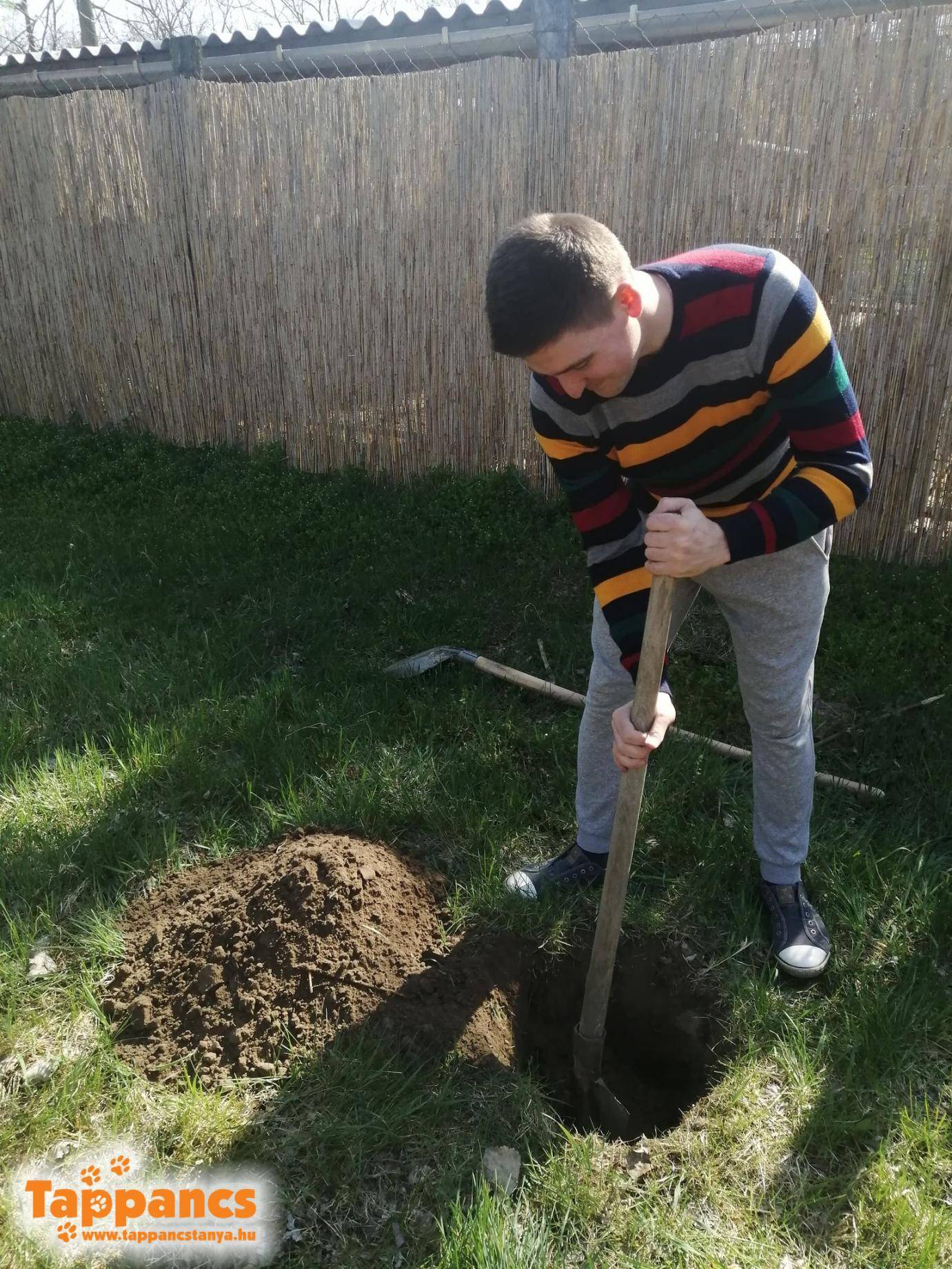A 10 millió Fa Kutyás közösség jóvoltából még tavaly megérkeztek hozzánk a facsemeték, amit a telet vermelve töltötték, most pedig elérkezett az idő, hogy végre elültessük őket.