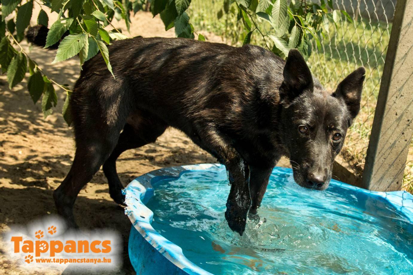 Kérem, bocsássák meg nekem, hogy nem minden kutyáról prezentálom a legfrissebb fotókat, de nehéz valóban jó minőségű, naprakész fényképekkel készülni. Félénkről ez a kép nyáron készült, ő akkor van igazán elemében, ugyanis imád fürödni.