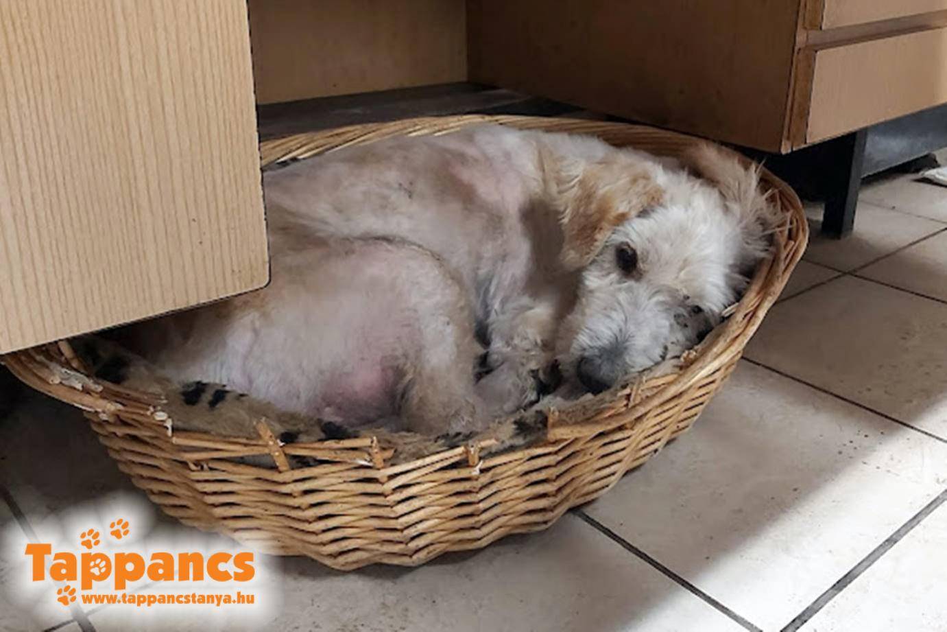 Az első képen az látható, hogy milyen állapotban került hozzánk. Második képen a menhelyi kozmetika után, végül a harmadik képen már új otthonában.