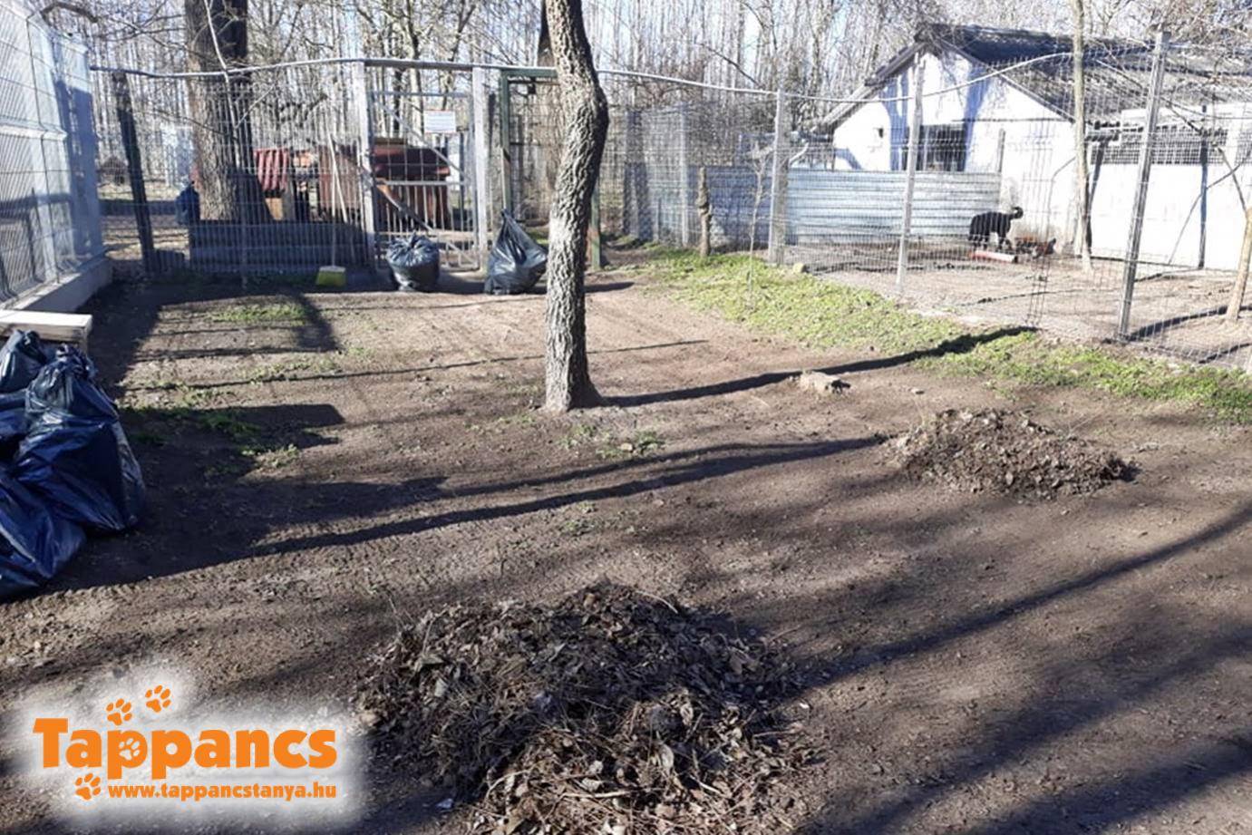 Önkéntesünk, Melinda a fiúk tegnapi munkáját egészítette ki, ugyanis a sétáltató ösvényt gereblyézte végig, emelett pedig a szokásos takarításra is volt ideje.