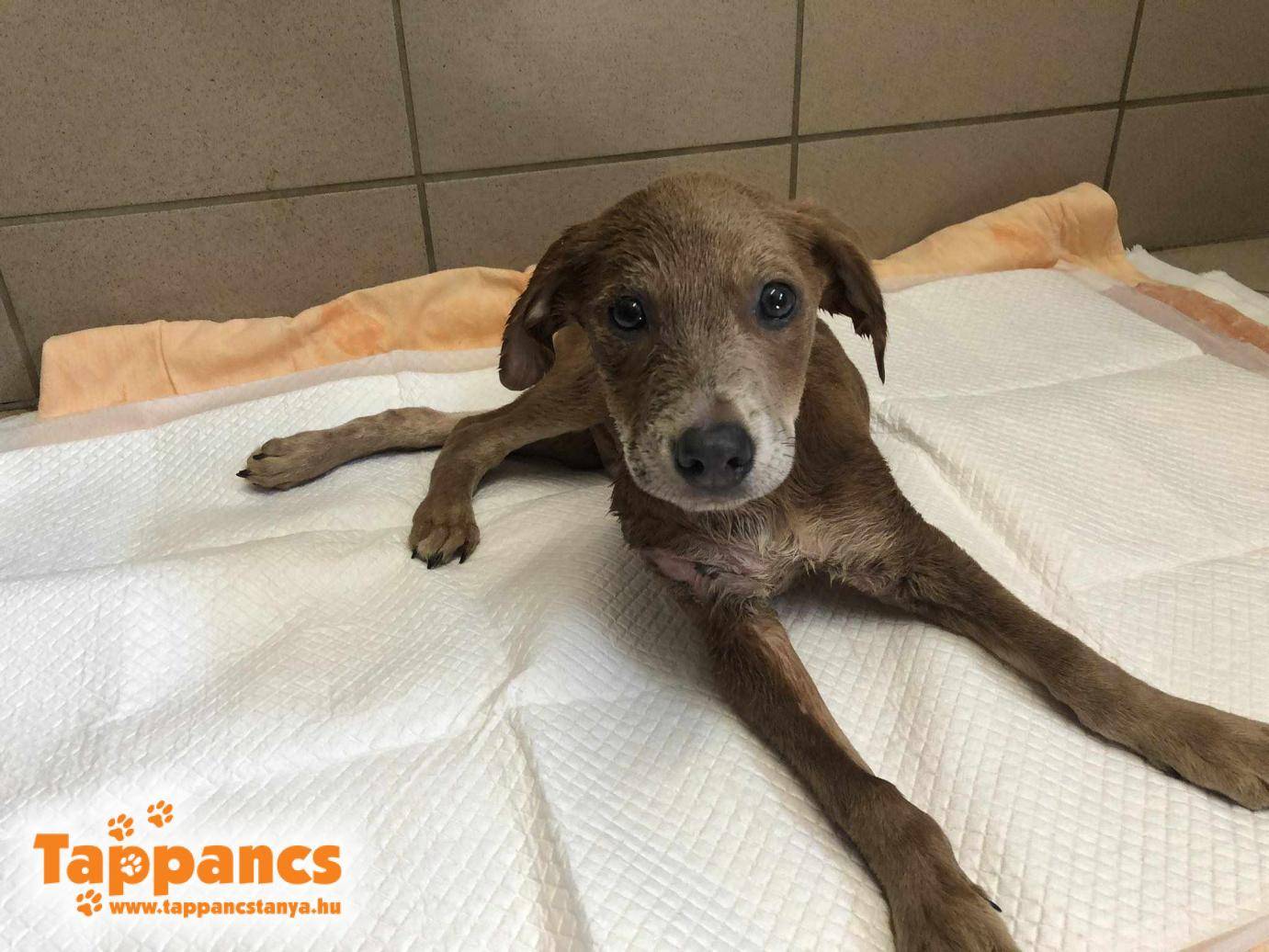 Reggel egy kétségbeesett síró hölgy telefonált, hogy munkába menet egy kölyköt talált az út szélén, aki egy kartondoboz mellett feküdt.