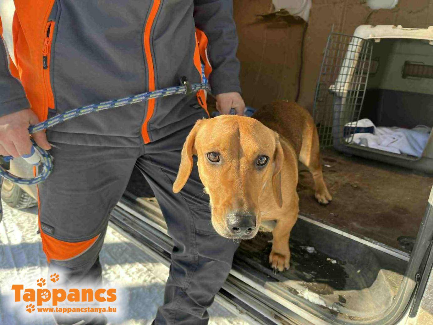 Önkéntesünktől, Vikitől érkezett egy tekintélyes méretű, tacsi jellegű kutyus. Ő néhány nappal ezelőtt lett befogva Szegeden, elő is került a gazdája, de végül úgy döntött lemond róla.