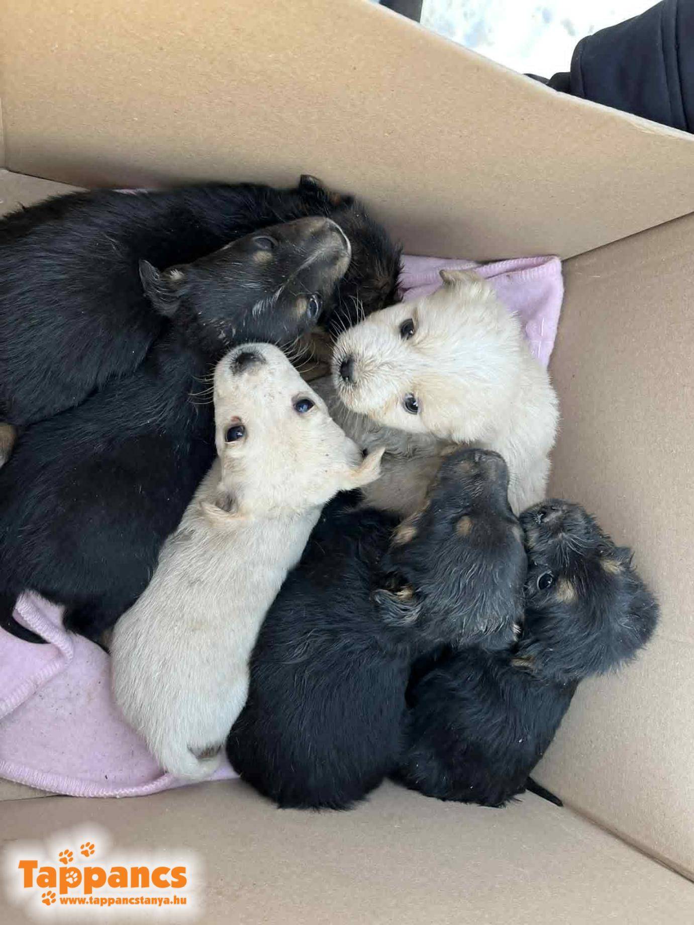 Egy állatbarát hölgy az autójából meglátta, hogy egy apró méretű kölyökkutya sétálgat az úton. Felfigyelt egy kartondobozra, ami a megàllóban volt. Megállt, és megnézte a doboz tartalmát. Egy alom kölyökkutya reszketett a dobozban. Annyi bizonyos, hogy nem két perce várták a segítséget. Elképzelni sem tudom, hogy ő volt az első, akinek feltűnt a doboz. Ezek a kiskutyák rövidesen halálra fagytak volna. Természetesen befogadtuk őket.