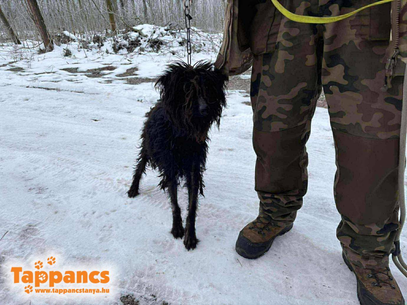 Ásotthalomról jelezték, hogy találtak egy igen elhanyagolt kinézetű, fekete színű, nem túl barátságos kutyát. Természetesen egy tekintélyes láncdarabot húzkodott maga után, ami már önmagában tanúbizonyságot tesz róla, hogy nem volt túl jó élete. Nem meglepő tehát, hogy nem túl barátságos-hogy finoman fogalmazzak!