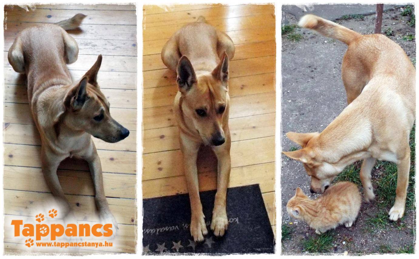 Hozzánk került egy kis miáúú is – a kutyafáját! Kissé ugyan féltékenykedtem, de úgy látom, nem tud megfosztani a rangsorban elfoglalt helyemtől, ezért aztán összebarátkoztam vele. Nagyokat futkározunk – ha jó az idő – a kertben. Időnként anyáskodom, egy kicsit felette- nyalogatom a nyakát, pocakját -, lévén ő még csak öt hónapos.