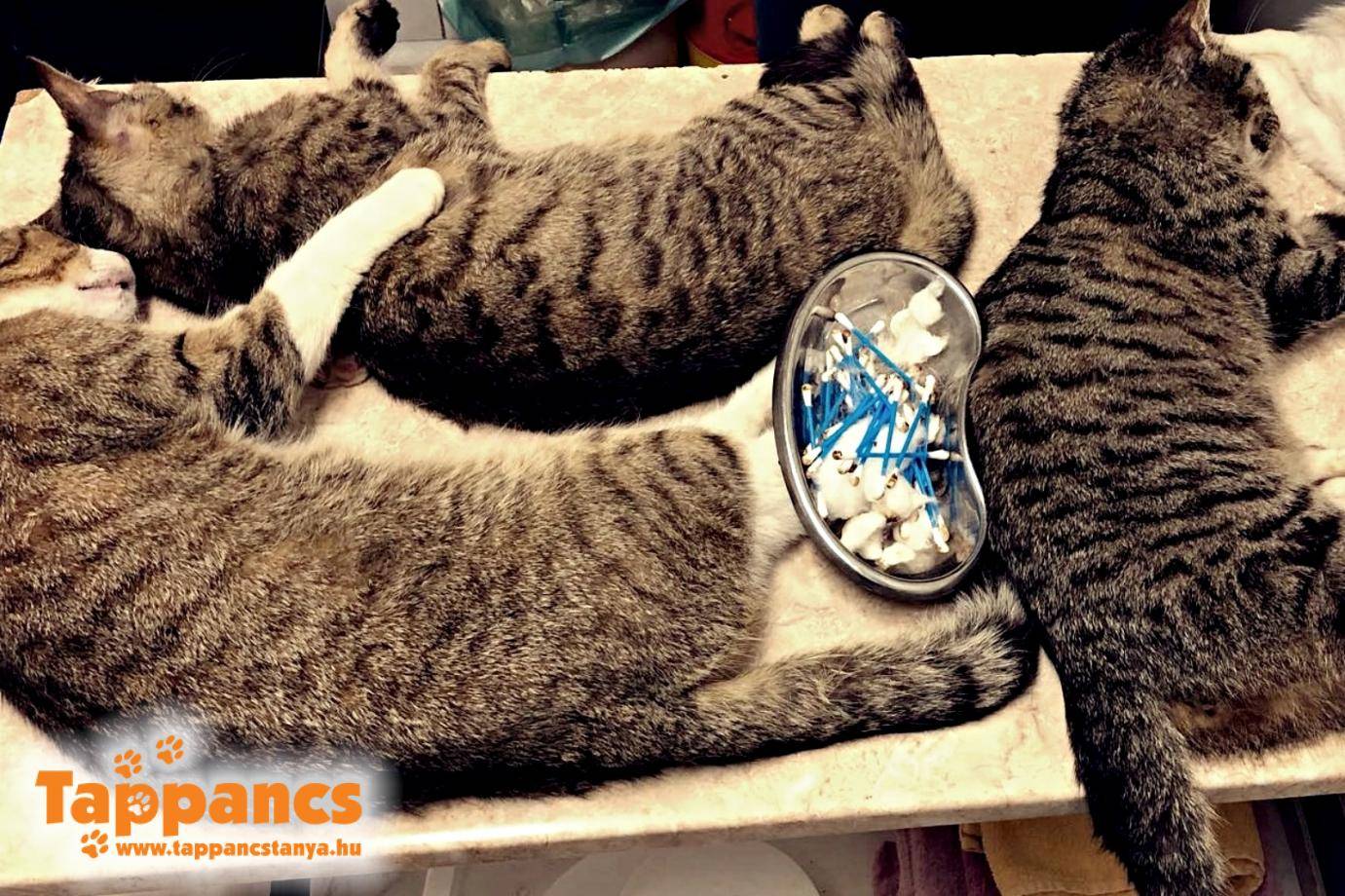 Április végéig tehát 14 nőstény és 9 kandúr műtétje történt meg a két kolóniából összesen.