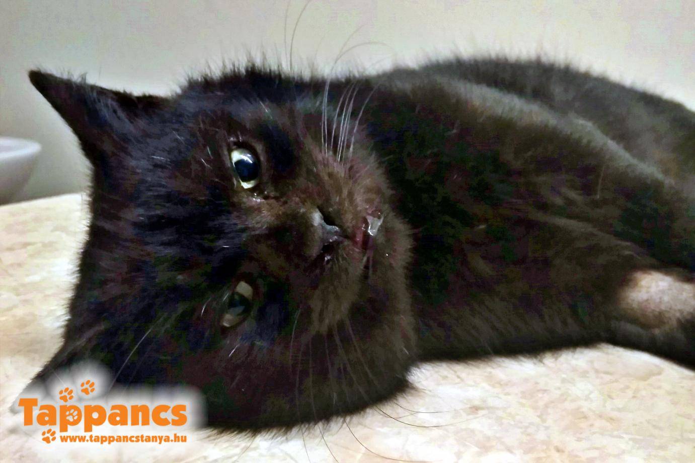 Az egyikőjük, egy fekete kandúr igen vad, ráadásul FIV+ (ő a kolóniából a harmadik macska-AIDS-es cica!), a szája, ínye borzalmas állapotban volt, le kellett szedni a fogkövét is, mert csoda, hogy még egyáltalán enni tudott. Csapdázásakor ráadásul még náthás is volt, így a műtétje előtt egy hetes antibiotikum kúrán is átesett. Szerencse, hogy megette a gyógyszert ételben, mert egy ilyen vad macskát lehetetlenség máshogy gyógyszerezni, ugyanis emberi közeledésre fúj, morog és támad. A félős nőstény cica pedig körülbelül 2 hetes vemhes volt már, ivartalanításával 6 kiscica nem született meg teljesen feleslegesen.