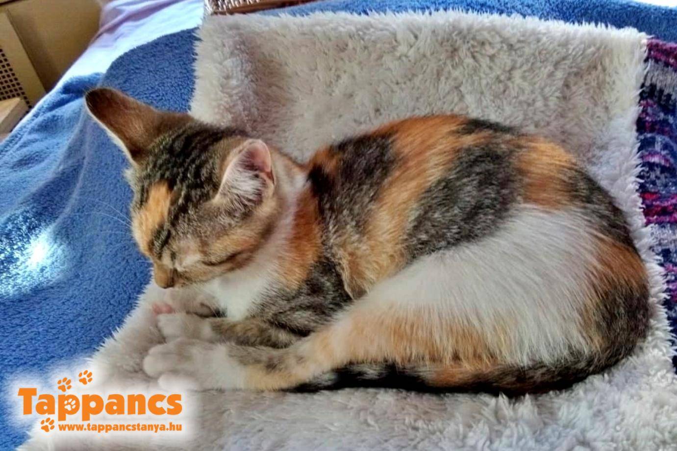 Mici cica körülbelül 3 hónapos kisördög. Egy dorozsmai háztól vállalta át Judit a gondozását, ahol sok cica van (a felnőttek ivartalanítása folyamatos, 4 felnőtt cica, 2 kandúr és 2 nőstény ivartalanítása történt már meg idén, de több - korábban ivartalanított - cica is van ott). A bal szeme egy korábbi fertőzés miatt enyhén hályogos, amelyen már sokat javított az eddigi szemcseppes kezelés. Teszteltettük, szerencsére FIV/FeLV (macska-AIDS és leukózis) negatív, így megkaphatta első kombinált oltását is. Második oltása, valamint ivartalanítása UTÁN gazdikereső lesz ez a kedves, trikolor kislányka.