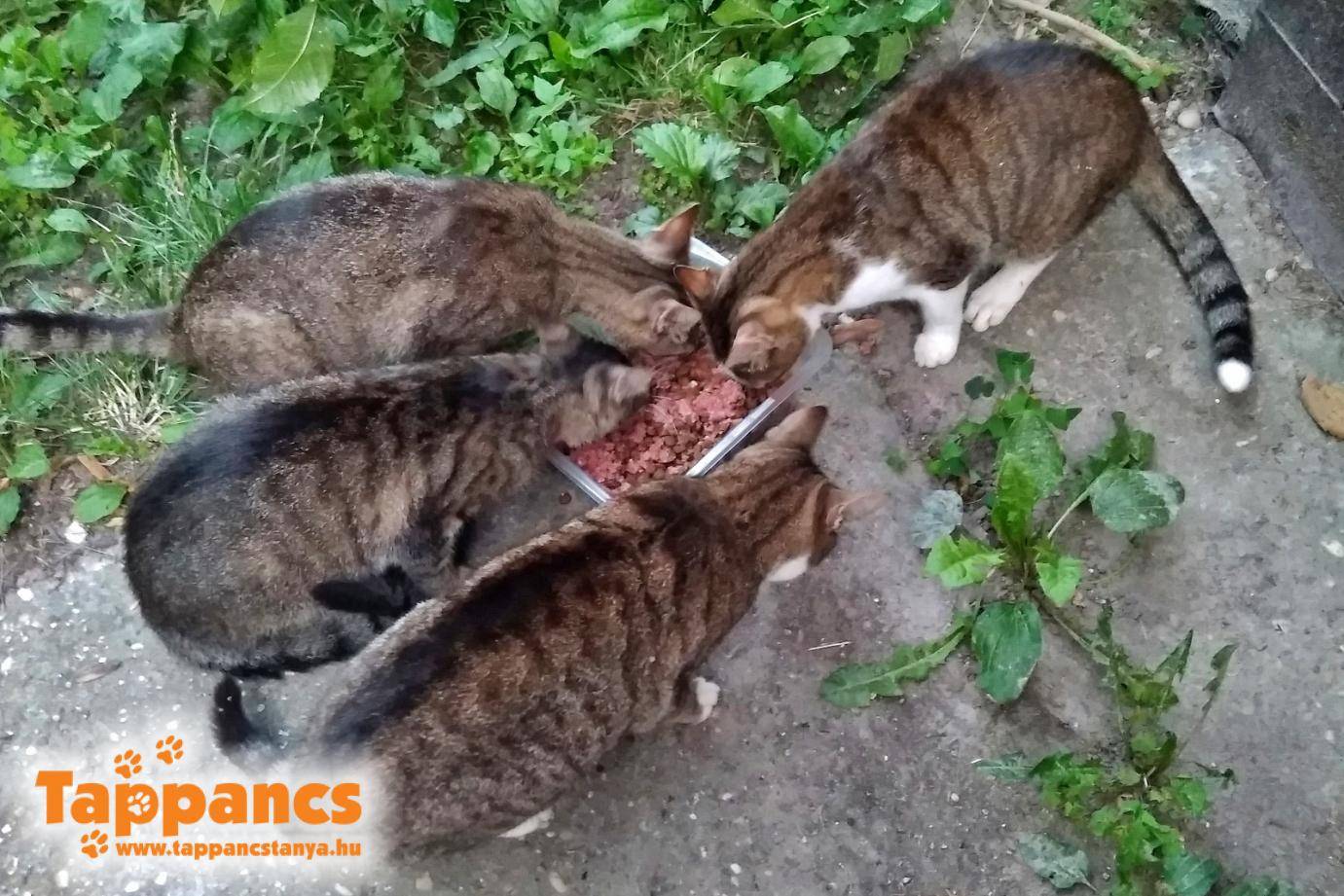 A garázsban elbújt cicát becsapdáztuk, természetesen nem eresztettük szélnek, hanem betettük a garázsunkba, ahonnan orvosi ellátást követően szerencsére gazdisodott. Azóta pedig minden nap etetem a további 7, árván maradt cicát és próbálom őket szelídíteni, mert többen közülük nagyon félősek. Minden este várnak néhányan, hogy megkapják a finom vacsit és bízom benne, hogy a tél beálltáig sikerül nekik valamilyen megoldást találni, mert ők (sem) az utcai létet érdemlik. A fiatalabb kandúrkák mindig nyávogva futnak utánam, hogy a kaja mellett megkapják a simogatás adagjukat is, borzasztóan vágynak szegények az emberi közelségre is.