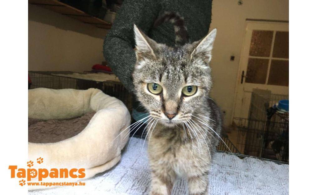 Rossz állapotban találták, de megtalálói befogadták, és valamennyire sikerült megerősödnie, átesett az ivartalanításon közben. Minden szép és jó volt, megtalálói megszerették a nyolc év körüli cicalányt, kit Luckynak neveztek el. Ám Lucky állapota most újfent lerobbant, napokon keresztül nem evett, ezért felkerestek minket, hogy sürgőssé vált a bekerülése, ők már nem tudnak boldogulni vele. Ahogy bekerült ez a pici méretű cicuka, azonnal barátkozott velünk, és szerencsére néminemű pempőt is eszegetett. Kapott immunerősítőt, B vitamint, roboráló konzervet, valamint antibiotikumot, gyulladáscsökkentőt, mert iszonyatosan be volt gyulladva az ínye, ezért minden étkezésnél egyre ügyesebb volt, és egyre könnyebben tudott enni. De látszott rajta, hogy felettébb rossz állapotban volt, gondoltunk itt valamire pozitivitásra, vagy vesebetegségre is... Egyelőre minden tőlünk telhetőt megteszünk, hogy a jelenlegi állapotát kicsit feltornázzuk.