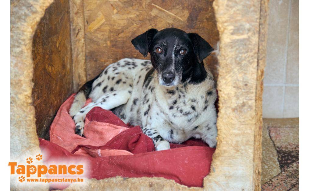 A félénk kutyust az egyik menhelyi dolgozó találta egyik reggel a munkába menet, közel a tanyához. Lassan kezdi biztonságban érezni magát, de még mindig nagyon visszafogott.