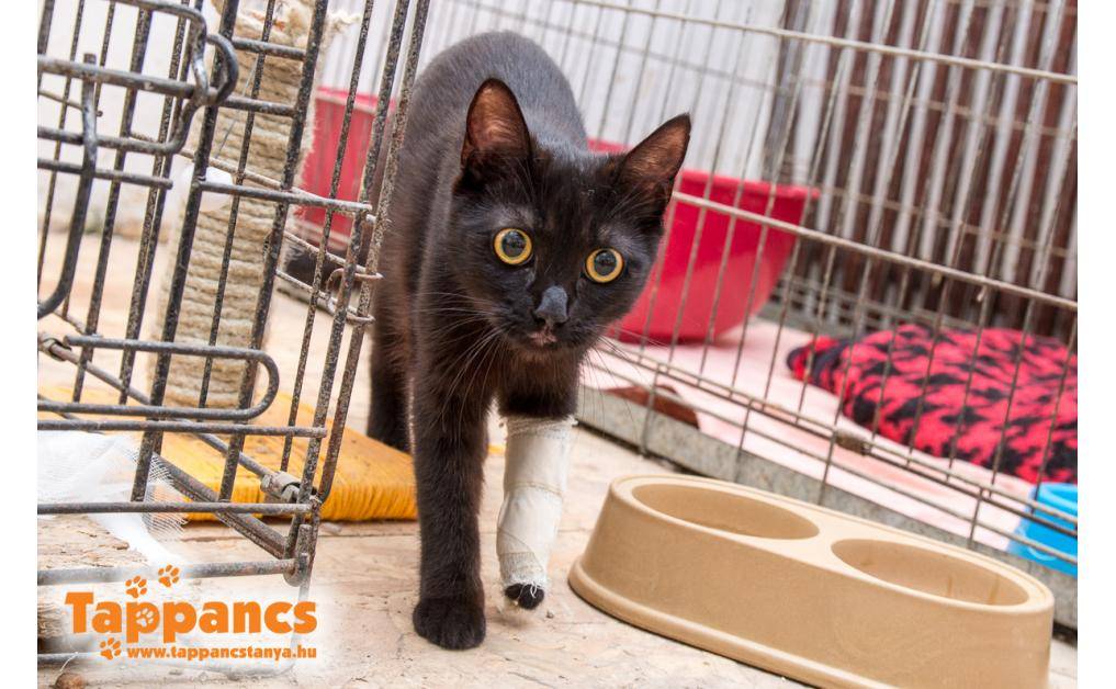 A Gáspár Zoltán és Gáz u. sarkán lévő telefonfülke mellett feküdt, mozdulatlanul a vérében. Telefonon kaptuk a segítség kérést, kolléganőnk munkába jövet felvette, orvoshoz vitte, ahol gyorsan ellátták. A száján a bőre felszakadt, lábát fájlalta. Később a röntgen kimutatta, hogy 2 helyen törött is. Közben meglett a gazdija is, aki a 2 hét veszettségi megfigyelés után haza viheti.