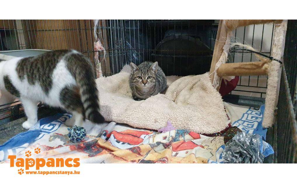 Várólistáról került be két kölyök cica Dorozsmáról. Az anyjuk egy társasház udvarán talált menedéket, idős házaspár etetgette őket. Egészségügyi okok miatt magukhoz nem tudták befogadni, de nagyon szeretik az állatokat, megsajnálták. A ház többi lakóját zavarta, nem segítettek az időseknek, csak a zsörtölődés ment miatta, ezért kértek segítséget. Közben világra is hozott három apróságot, ebből a legkezesebb eltűnt, a másik két kicsi pedig most bekerült a menhelyre. Anyjuk nem adta magát könnyen, hogy betegyék hordozóba, ezért kölcsön kértek egy élvebefogó csapdát. A két kicsi kellően meg van szeppenve, egyelőre nem is barátkoznak csak fújnak ránk. Azért rövid időn belül rájöttek, hogy nincs okuk tartani tőlünk, apró léptekben már dorombolással viszonozták meg a simogatást. Még bizalmatlanok, nyilván, de napról-napra jobb a helyzet, és egyre érdeklődőbbek, nyitotabbak. Körülbelül 4 hónaposak lehetnek, lánykák. A cirmos szerényebb, visszafogottabb (egyelőre), ő a Lujza nevet kapta, míg nővére, a kis kerekded forma cirmos-fehér falánk leányzó a Leila név büszke tulajdonosa.