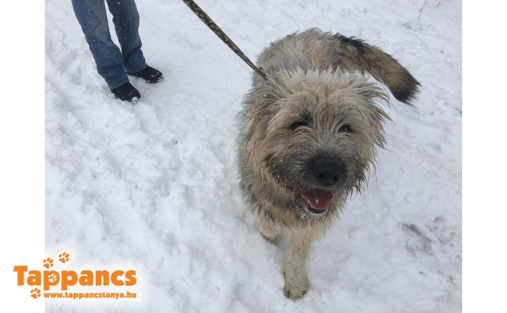 Buckót a Dorozsmai úton találták, ahonnan ideiglenes befogadóhoz került. Az órási mackó igen barátságos, bár némileg hebrencs. Bármikor szívesen belemászik a személyes teredbe, nem jön zavarba semmitől. Szereti a figyelmet és törödést. Csupaszív, jó kedélyű négylábú.