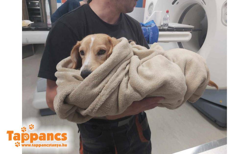 Bordányi úton találták elütve. Nagyon rossz állapotban szállítottuk állatorvoshoz, ahol kiderült tüdejében és a hasüregben vér van. Éjszakára benttartották, és hála az égnek reggelre jobban lett, de még hosszú út áll előtte a teljes felépülésig.