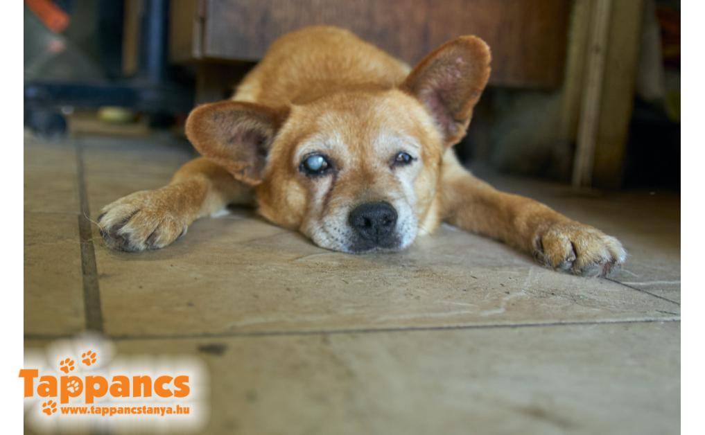 Az idős vak kutyust a Füge soron találták. Szerencsére valamennyit hall. Elképesztően aranyos, és bújós.