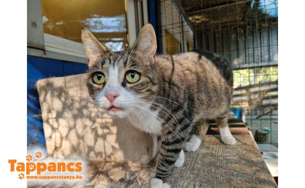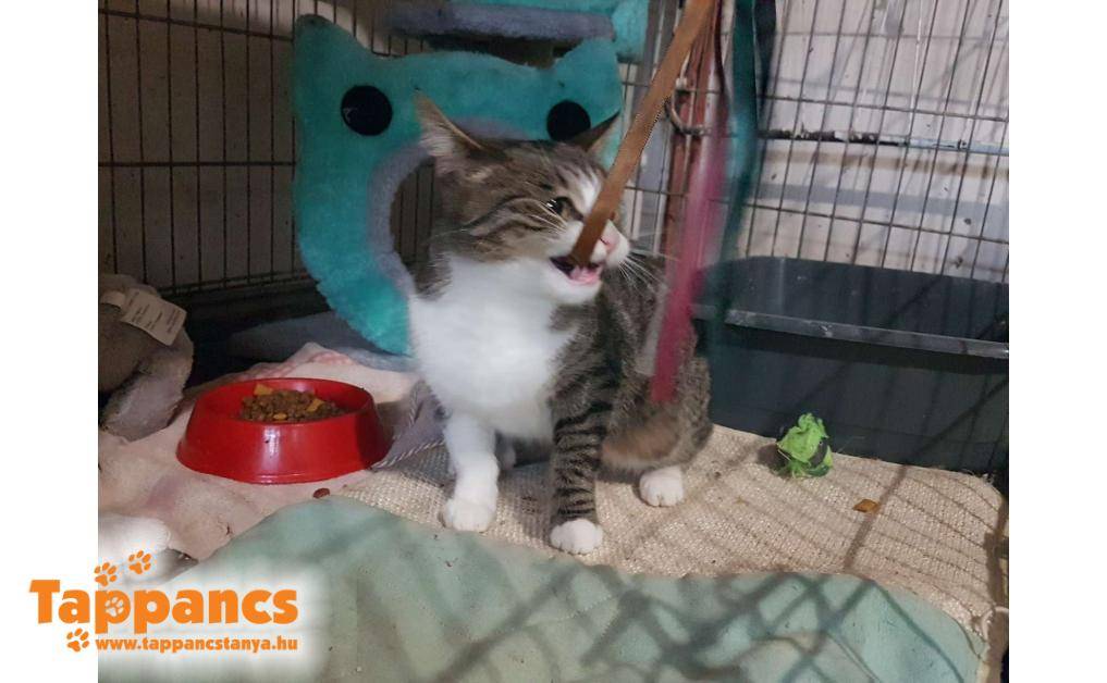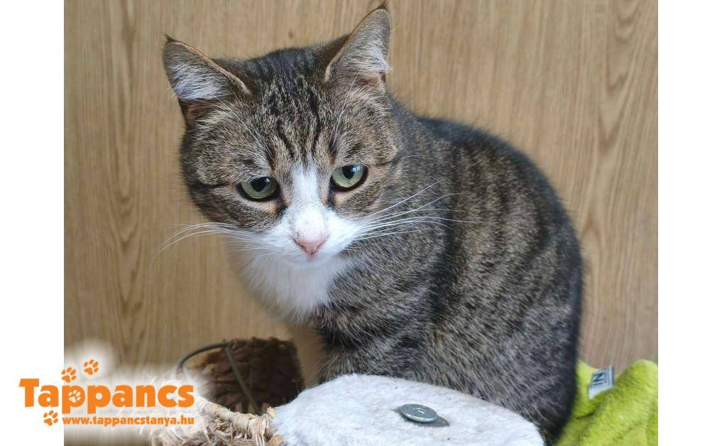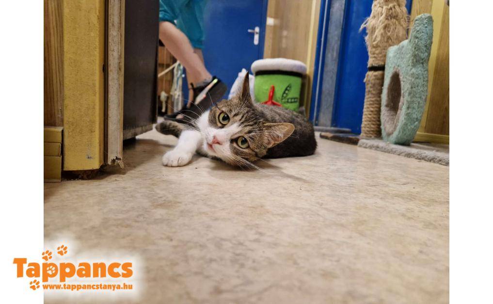 A gazdi halála után ott maradt egyedül ez az egy év körüli cica, aki siket. Mivel a lakás eladó sorba került, az elhunyt gondozója  allergia miatt nem tudják haza vinni, ezért az utca helyett a menhelyet látták legjobb megoldásnak. Eltűnt a fedél a feje felül, csak egy hordozója maradt a cicának. Szegény cicának úgy tűnik több időre lesz szüksége az átlagosnál, de reméljük azért sikerül majd elfogadnia minket.